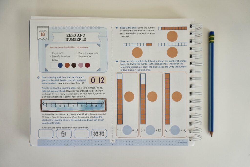 Then I squeeze in a bit of homeschool math with my 5- and 6-year-olds — about 10–15 minutes. Meanwhile, my 2-year-old is outside with chalk, ideally not eating it.