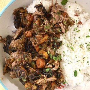 - Transfer lamb to a cutting board, tenting with aluminum foil and allow to rest for 30 minutes. Then shred the lamb into large chunks, return to pot. Stir well to incorporate, garnish with chopped parsley, and serve with a side of rice. Happy Purim!