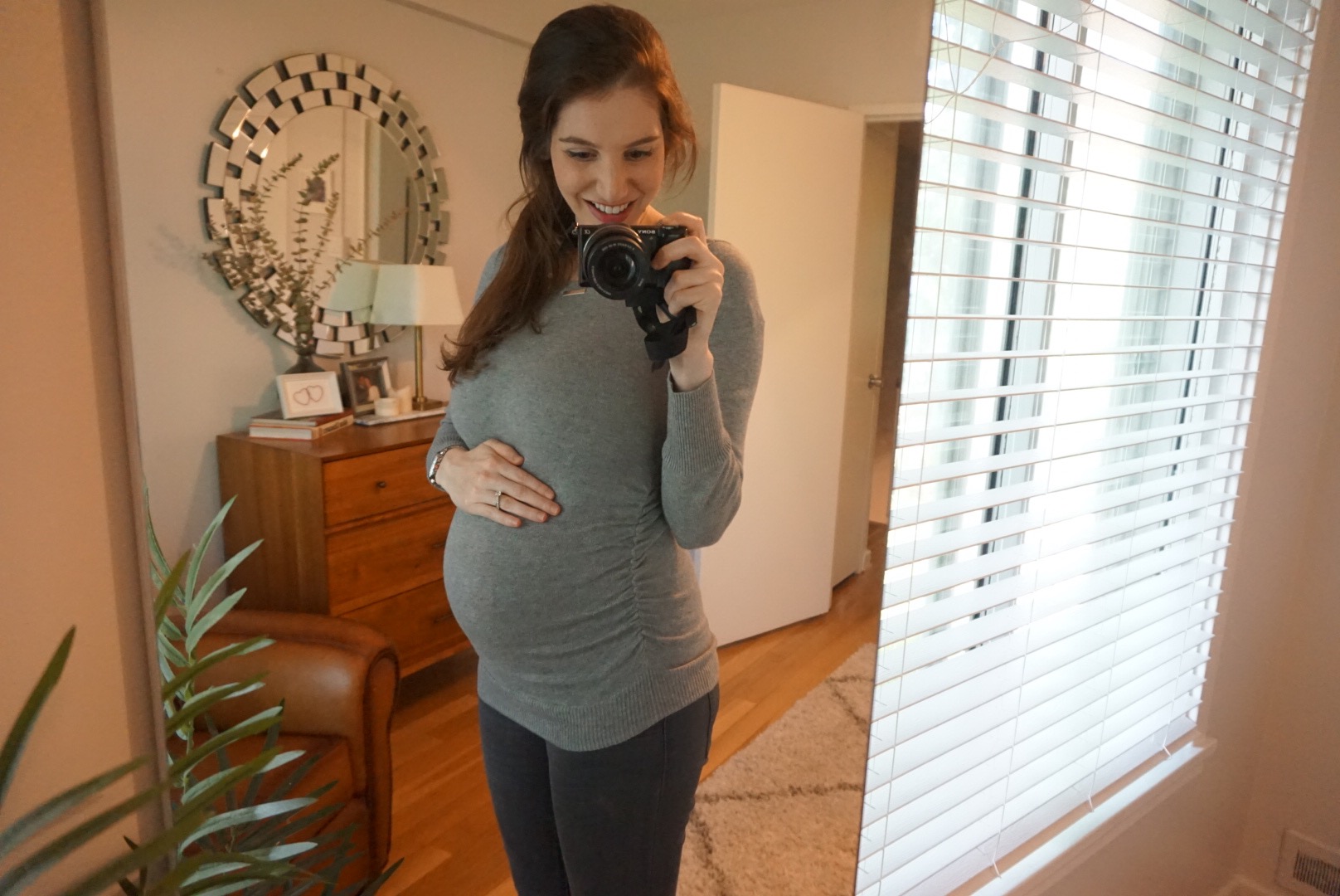 How far along? 28 weeks, 1 day. Total weight gain: 25lbs. I’ve literally never been this heavy in my entire life. At first I was worried this would be a 60lb pregnancy, because I gained 20lb in the first 18 weeks. But the rapid weight gain has slowed way down. Not that I care about the scale, whatever it takes to cook a healthy baby is fine by me, but still… Sleep: Sleep has been fine so far. It’s a bit of a struggle since stomach sleeping is a no-no. They claim the best position is sleeping on your left side, due to a major artery running up your right side. Even laying on my back for long periods of time is difficult. It’s been an adjustment, but for now, sleep is OK. Best moment this week: Baby shopping with my mother. She flew up to help me pick out nursery furniture, a stroller, bassinet, carseat, swaddles, pacifiers, and everything in between. My doula sent me over a newborn baby shopping list, and let me tell you, it was overwhelming. After dedicating an entire weekend to shopping with my mom, we were able to knock off everything. It is SUCH A RELIEF to have everything we need for baby girl. Maternity clothes? Ummm YES. I’ve been living in my maternity leggings since week 10. And let me tell you, maternity jeans are the BEST THING EVER. Jessica Simpson has a line out, I own three pairs.