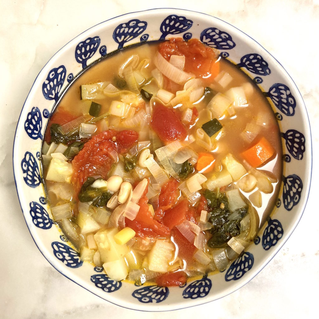 Are you sick of seeing this blue and white bowl yet? I am! We’re moving into our NEW HOME in less than 6 weeks, and I definitely plan on adding more variety to our bowl collection (which currently consists of four of these blue and white Antropologie bowls). But until then, I have zero desire to purchase anything new until we’re settled in the new space. ANYWAY, here’s this weeks Soup of the Week: Classic Minestrone!