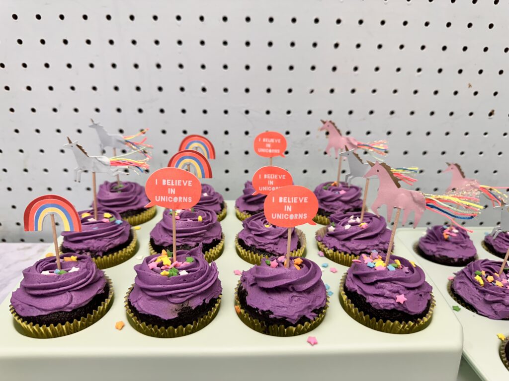 I made these for my daughters 5th birthday party, and they were a big success. It’s a very easy recipe and comes out beautifully. I love to pair this recipe up with vanilla buttercream and a bit of food coloring to tie together the birthday theme. In our case, it was rainbow-unicorns, so. E-A-S-Y as 1-2-3 Chocolate Cupcakes