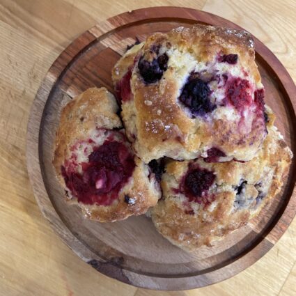 We love having scones for breakfast! The adults love them in the morning with a cup of coffee, and the kids love them in the morning with a glass of milk.