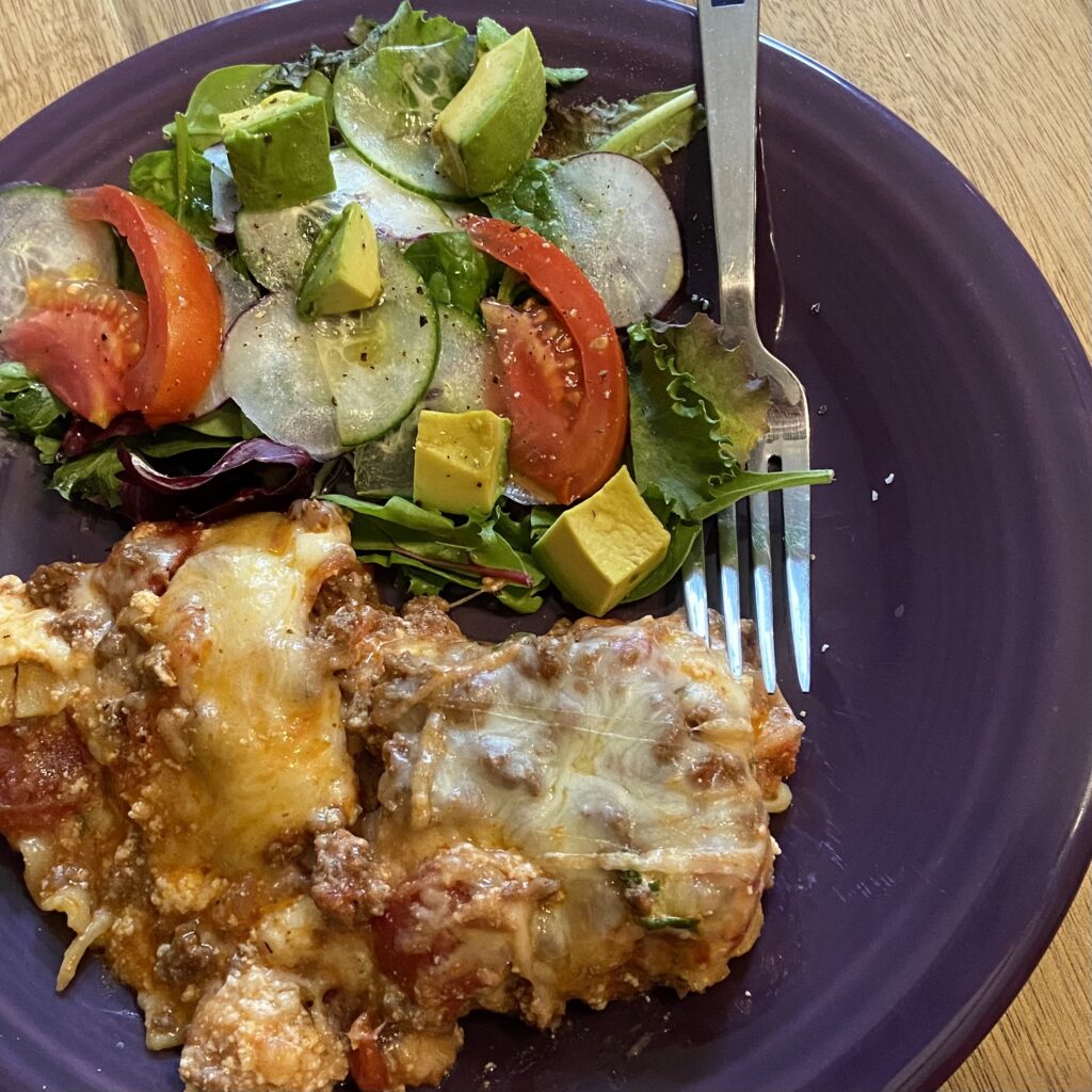 I love pairing this meal up with a simple house salad and french bread. My toddlers love lasagna night, and we love having lunch left-overs the next day!